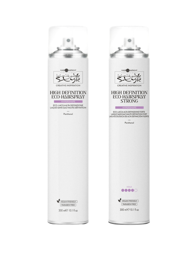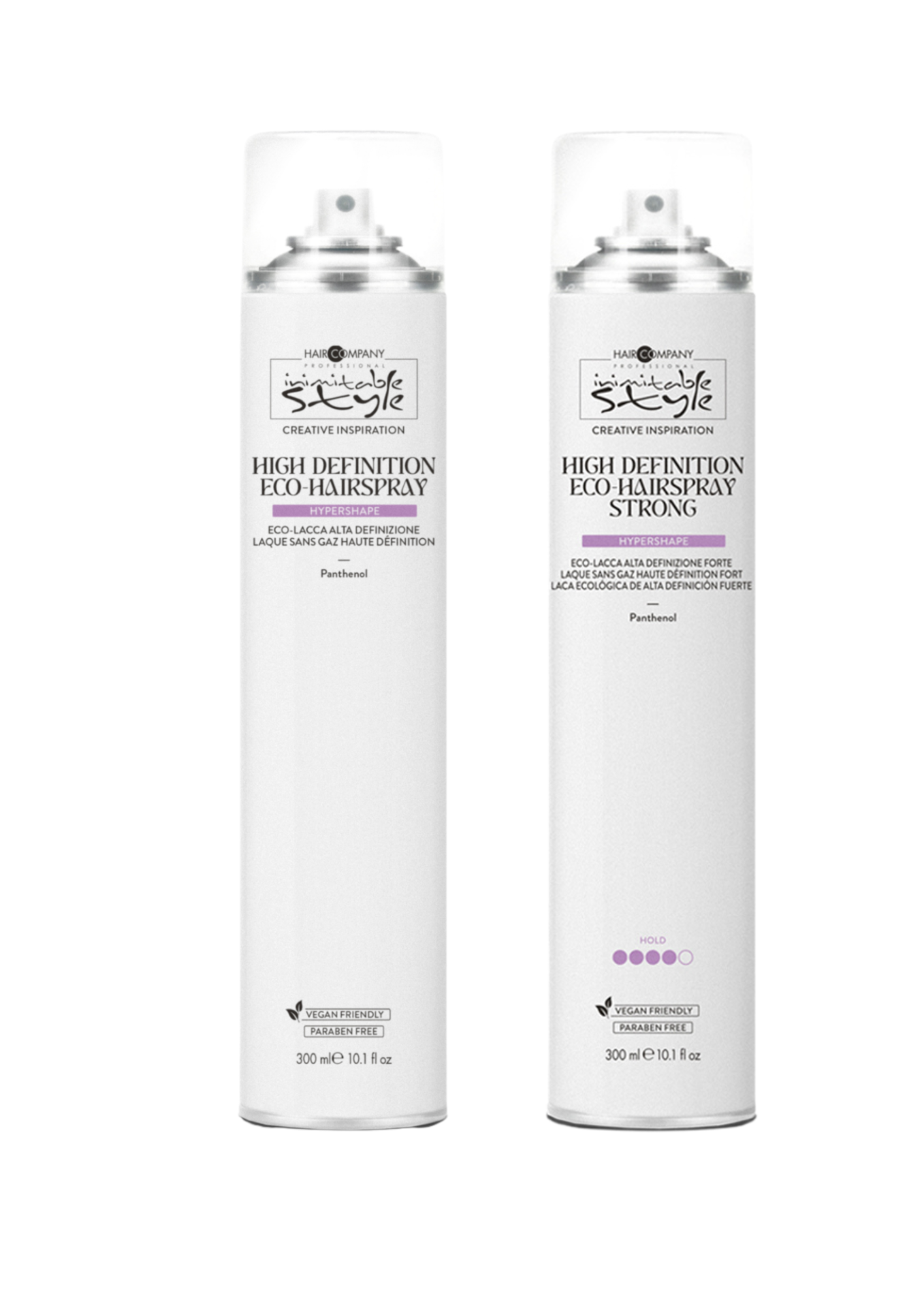 INIMITABLE STYLE HIGH DEFINITION ECO HAIRSPRAY (bez plynu) jsou laky na vlasy nabízející silnou a dlouhotrvající fixaci. Zanechávají vlasy suché a beze zbytků a lze je snadno vyčesat. Oba laky na vlasy mají příjemnou vůni a jsou ideální pro vytváření odvážných, důmyslných a propracovaných účesů, přičemž vlasy zanechávají jemné, lehké a pružné.