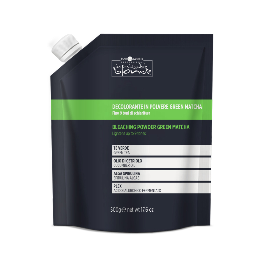 Inovativní odbarvovací prášek v barvě matcha, který se přidáním vhodné oxidační emulze Hair Company Professional promění v masku s jemnou a hedvábnou texturou. Umožňuje tak lepší rozložení na vlasech. Antioxidační a hydratační vlastnosti řasy spirulina a zeleného čaje pomáhají zachovat strukturu vlasů, navíc ochranný prostředek na bázi kyseliny hyaluronové vyplňuje a chrání vlasy během procesu odbarvování.