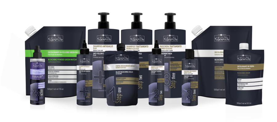 Nový exkluzivní třístupňový systém pro získání éterické a trvanlivé ledové blond. Řada Ice Blond je také vhodná pro bílé vlasy, na kterých působí proti nežádoucím žlutým podtónům. Určený k zesvětlení a neutralizaci teplých tónů. Zajišťuje více než 7 úrovní zesvětlení. Jeho jemné složení respektuje vlasy. Ve směsi s krémovým vyvíječem Hair Company umožňuje provádět jakýkoli druh zesvětlení.